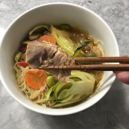 April 2, 2018 eyesonthegoodlife Easy Weeknight Meals: Asian Inspired Veggie-Noodle Soup and Tuna Steaks